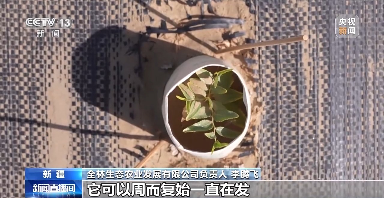 全林生態(tài)農(nóng)業(yè)發(fā)展有限公司負(fù)責(zé)人 李騰飛:沙塵暴這種摧殘之下,它可以周而復(fù)始一直在發(fā),只要它的根系不死,所以說我們稱它為“苗堅(jiān)強(qiáng)”。