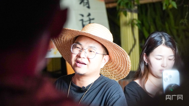 知名“三農(nóng)”主播曲靖老村長(zhǎng)正在老街直播(央廣網(wǎng)記者 魏文青 攝)