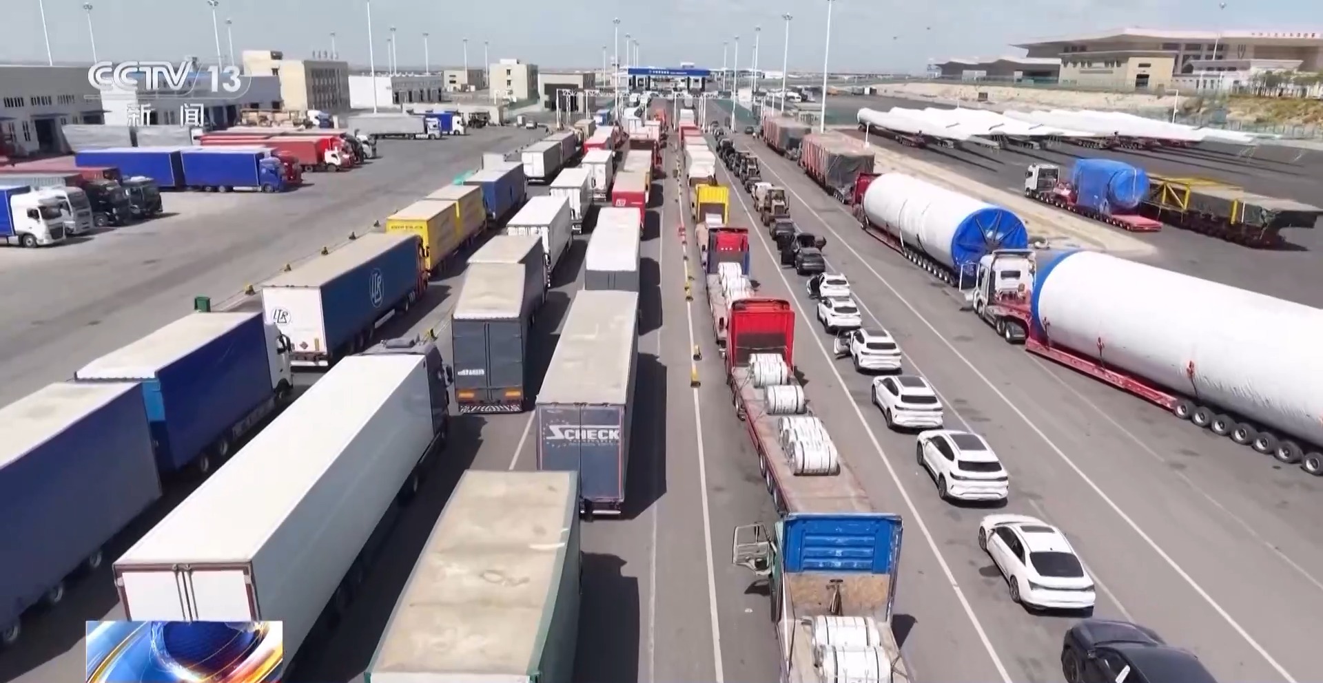 總臺央視記者 李廈:這里是霍爾果斯公路口岸,看我身邊龐大的車流,不僅有滿載跨境包裹的大貨車、更是有一眼望不到頭的國產(chǎn)新能源車和農(nóng)用機械車輛,甚至還有長達數(shù)十米的風(fēng)機葉片,這些琳瑯滿目的中國好貨,正在24小時不停歇地從這條黃金大通道駛出國門。