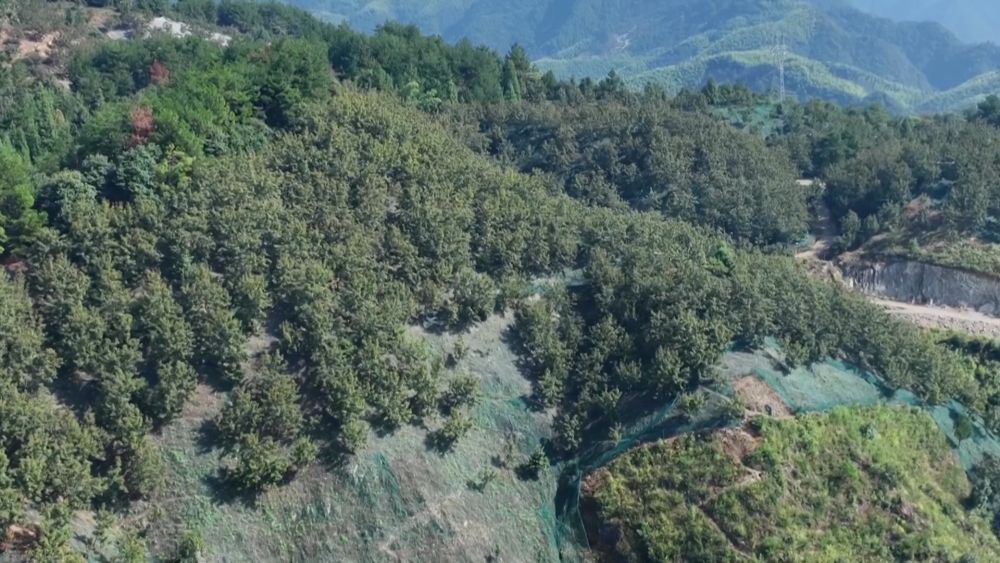 近年來,臨安區(qū)大力推廣張網(wǎng)采收,在昌化鎮(zhèn)白牛村西谷坪經(jīng)濟(jì)林林場(chǎng),一張張綠色的網(wǎng)像地毯一樣鋪滿山頭。