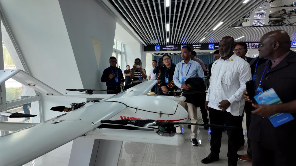 9月13日,外國(guó)議員在中國(guó)(新疆)自由貿(mào)易試驗(yàn)區(qū)喀什片區(qū)展廳低空經(jīng)濟(jì)展區(qū)參觀。 新華社記者 王澤宇 攝
