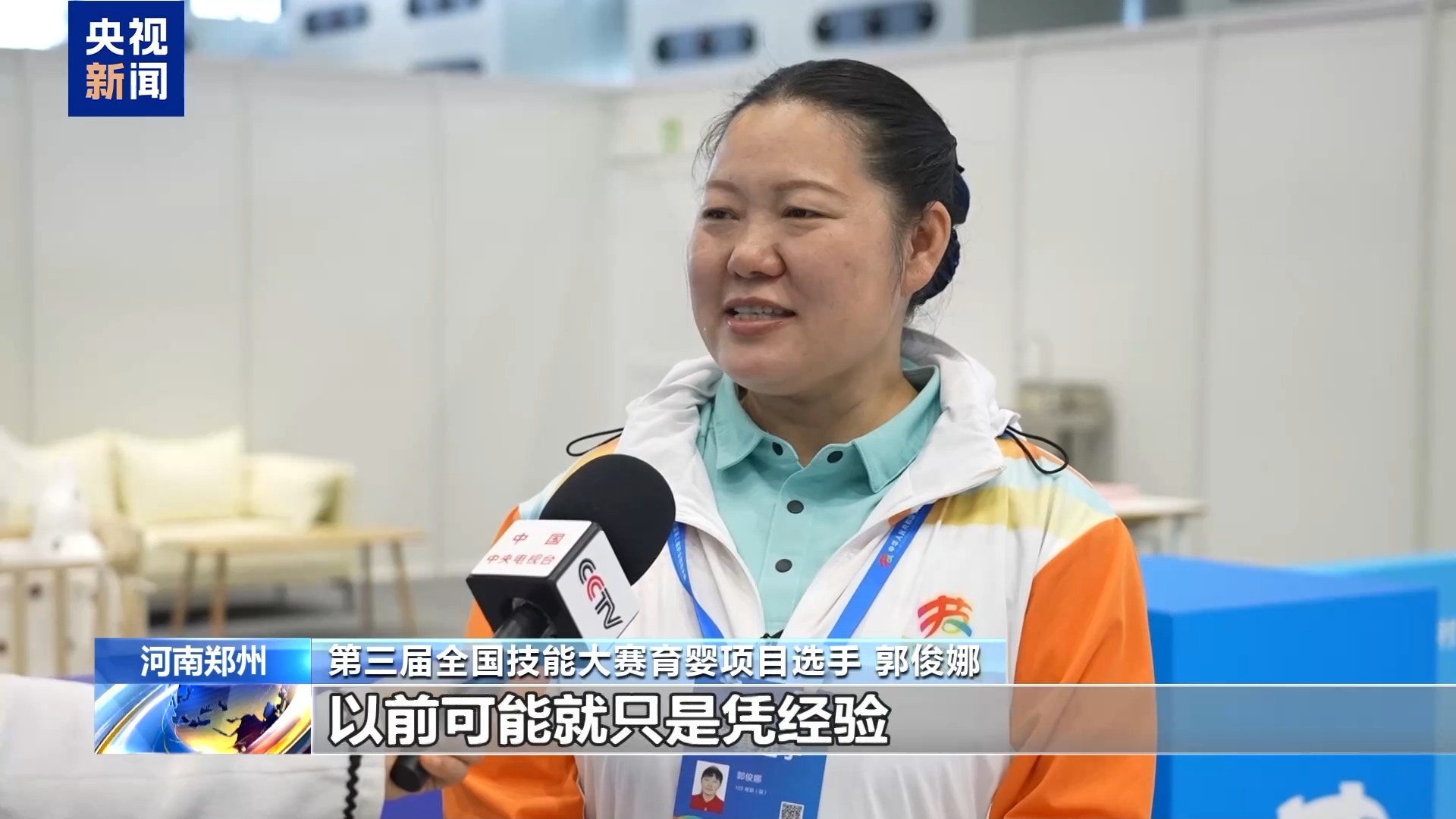 第三屆全國技能大賽育嬰項目選手 郭俊娜:比如給寶寶喂奶,以前可能只是憑經(jīng)驗(yàn),現(xiàn)在就要求抱孩子45度斜角。把流程標(biāo)準(zhǔn)化了,能夠更好地服務(wù)嬰幼兒以及家庭。