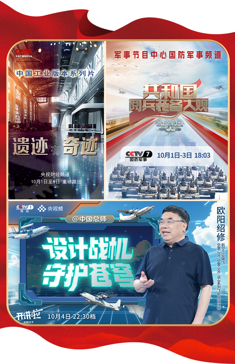 紀(jì)錄片《遺跡有奇跡》,深入探訪八個不同行業(yè)的工業(yè)遺址,展現(xiàn)中國工業(yè)發(fā)展的輝煌歷程。九三閱兵現(xiàn)場,新型察打一體無人機、空警-500預(yù)警機等硬核裝備令人振奮,《開講啦》“@中國總師”解讀中國軍工硬核實力,系列節(jié)目《共和國閱兵裝備大觀》帶你在鋼鐵洪流的轟鳴聲中見證軍工裝備的迭代升級,展示新時代中國科技創(chuàng)新帶來的大國力量!向前進,向前進,我們有信心、有底氣!