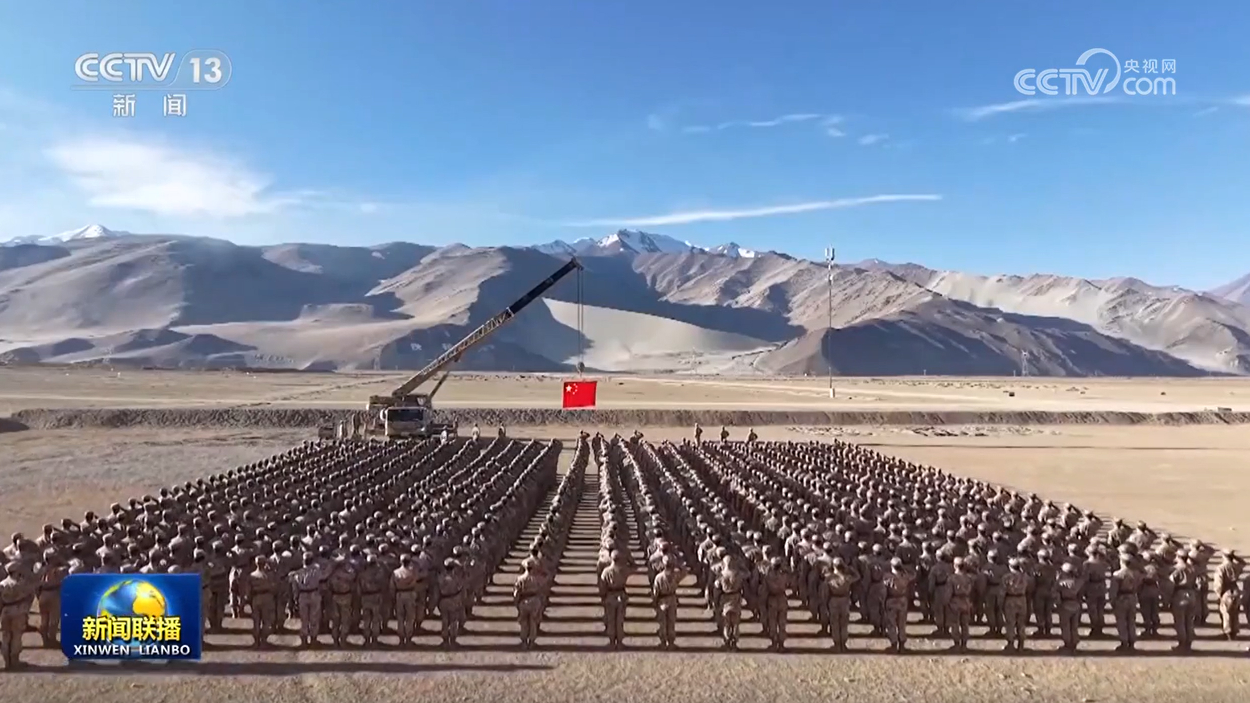 在東極列島最東端的海軍某觀通站,在“西陲第一哨”斯姆哈納邊防連,在北緯53°的北極哨所,在“南海第一哨”華陽礁,在全軍海拔最高的駐兵點,從雪域高原、戈壁大漠到萬里海疆,共和國衛(wèi)士們升起一面面五星紅旗,為祖國母親獻(xiàn)上祝福。