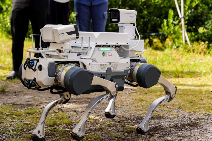 從“地面?zhèn)刹毂睓C械狗,到“無形劍客”激光清障儀,各種新技術齊登場。一方面,機械狗以其靈活性而著稱,可爬坡、越障,代替?zhèn)鹘y(tǒng)巡檢人員實現(xiàn)園區(qū)全角落全覆蓋,并將錄制的高清視頻實時傳回后臺,為工作人員提供技術分析數(shù)據(jù)支撐;另一方面,激光清障儀可利用其高度集中的光能,隔空切斷樹枝,確保在不停電、不爬高的前提下,安全清理威脅園區(qū)電網(wǎng)安全的樹障。
