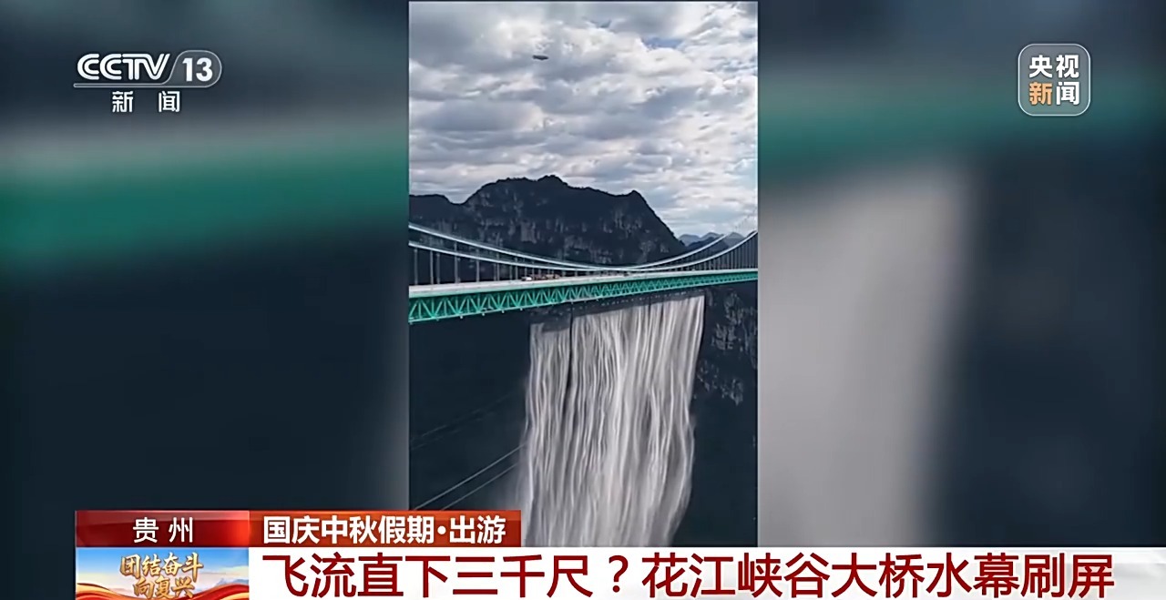就在前兩天,貴州花江峽谷大橋建成通車。大橋調(diào)試水幕的現(xiàn)場畫面,如“飛流直下三千尺”的瀑布,在社交媒體上刷了屏。今年國慶中秋假期,這座“橫豎都第一”的大橋吸引了很多游客慕名而來。這一路的游玩有什么好推薦?