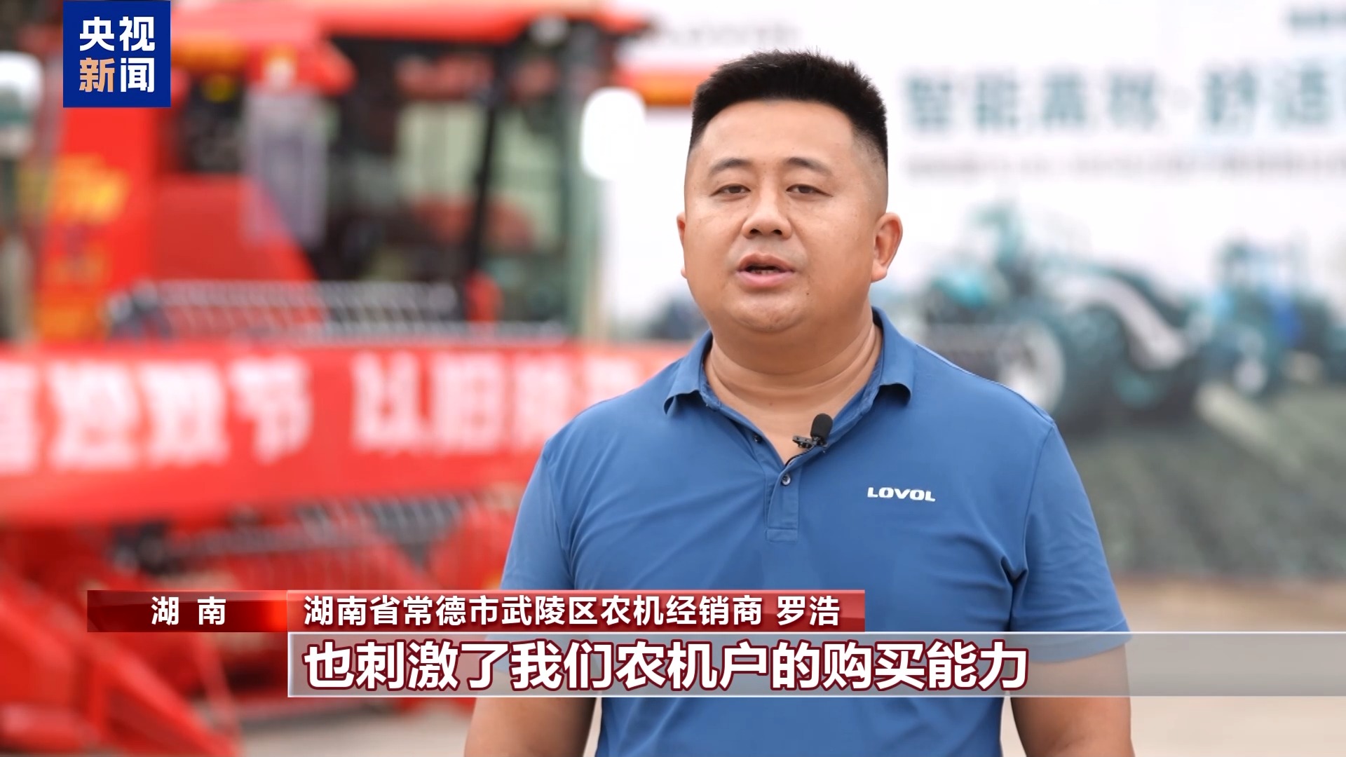 湖南省常德市武陵區(qū)農機經(jīng)銷商 羅浩:以舊換新政策有效地促進了我們農機的流通,也刺激了農機戶的購買能力。相比于往年,銷售提升了30%。