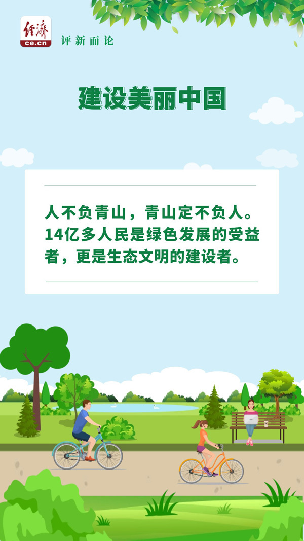 人不負(fù)青山,青山定不負(fù)人。14億多人民是綠色發(fā)展的受益者,更是生態(tài)文明的建設(shè)者。都說國很大,其實一個家。讓家園更美麗,期待每個人都能出一份力。