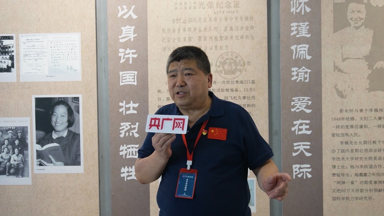 老專家志愿講解團成員馮濤在講述“兩彈一星”功勛郭永懷事跡時動情落淚(央廣網(wǎng)發(fā) 張文 攝)