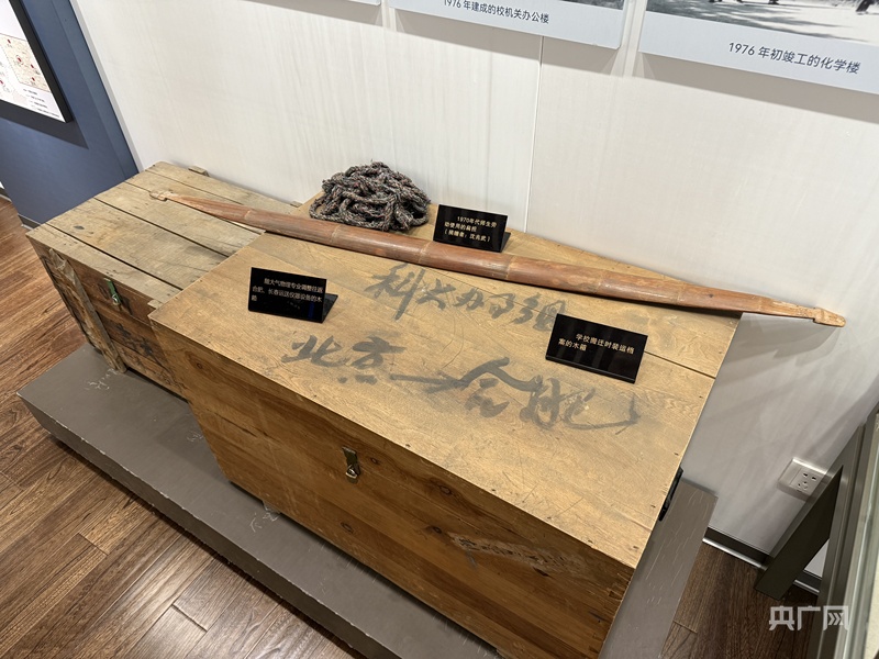 展柜中兩塊陳舊的紅色磚塊,銘刻著“史上最牛燒磚工”的故事?!爱?dāng)時(shí),為了能盡快恢復(fù)科研和教學(xué)工作,中國(guó)科大師生親手燒制了建造化學(xué)樓的紅磚,其中很多老師、學(xué)生如今已經(jīng)成長(zhǎng)為教授甚至院士,所以我們也經(jīng)常戲稱這群燒磚工為‘史上最牛燒磚工’?!蓖趺A介紹。