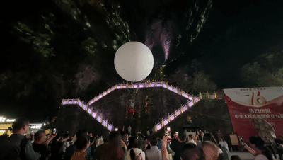 在湖南省張家界天門山景區(qū),國慶假期期間,這里每晚都會上演一場山水民俗視覺盛宴,令現(xiàn)場觀眾贊不絕口。