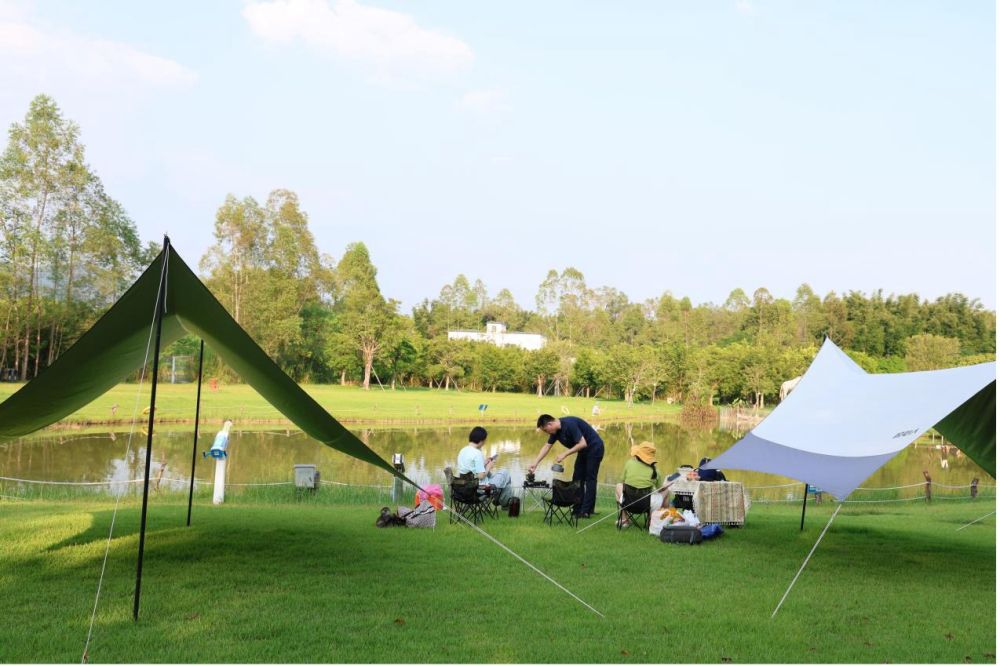 國(guó)慶中秋假期,廣州的游客在天幕旁享受露營(yíng)時(shí)光。新華社記者鐘焯 攝