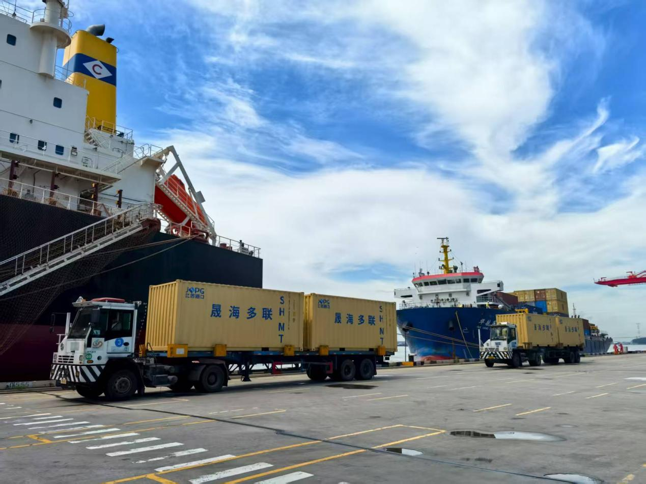 “傳統(tǒng)車皮運輸需多次倒裝,損耗率高、成本大。我們創(chuàng)新采用35噸敞頂箱替代車皮,鐵路直發(fā)龍?zhí)陡酆笸ㄟ^專用吊具直接拆箱裝船,全程貨物不落地、零損耗,每年節(jié)省物流成本近2000萬元。”晟海公司總經(jīng)理管俊俊向記者介紹。