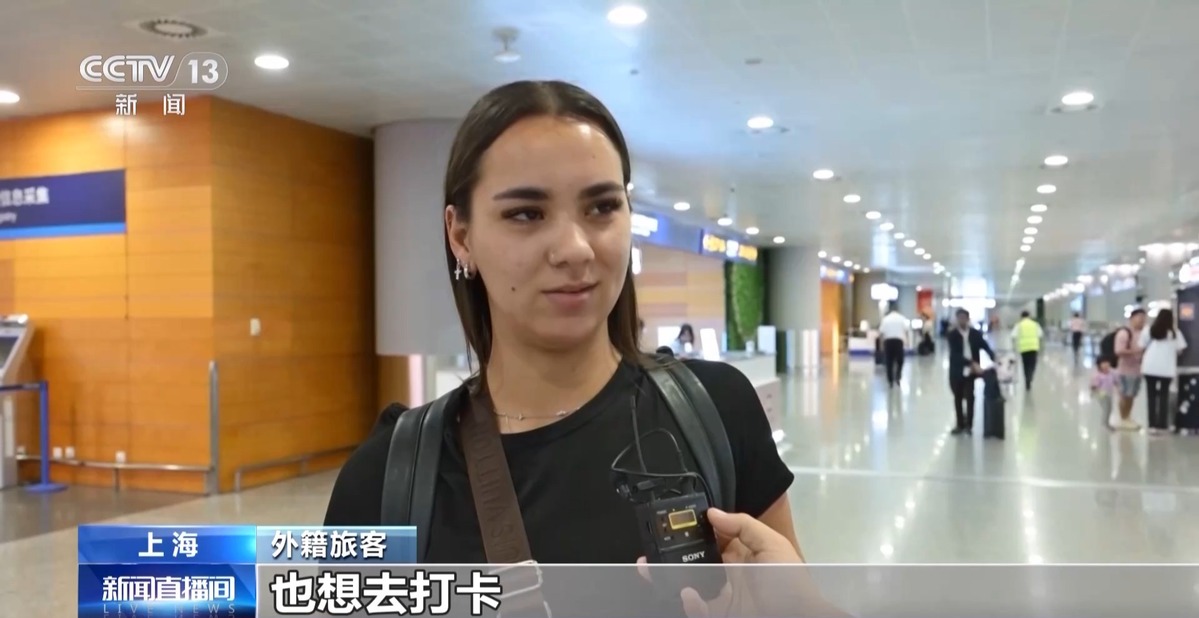 外籍旅客:我想去參觀那座標(biāo)志性大樓(東方明珠),我還看到上海有很多超可愛(ài)的咖啡館,也想去打卡。