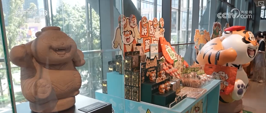 成都博物館文化創(chuàng)意產(chǎn)業(yè)部工作人員伍娜介紹,在整個(gè)文創(chuàng)行業(yè)發(fā)展起來后,文博行業(yè)也進(jìn)行了一些大膽的嘗試,包括和一些藝術(shù)家、非遺的傳承人,以及現(xiàn)在比較受年輕人歡迎的IP來進(jìn)行一些跨界的合作。他們想了一個(gè)創(chuàng)意點(diǎn),就是在“胖虎”的手上拿了很多具有成都代表性的元素,比如說茶館文化就拿了茶壺。