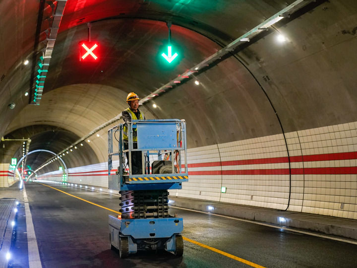 2025年9月28日,中鐵十一局的工人在四川夾金山隧道內(nèi)進(jìn)行收尾巡查施工。新華社記者 王曦 攝