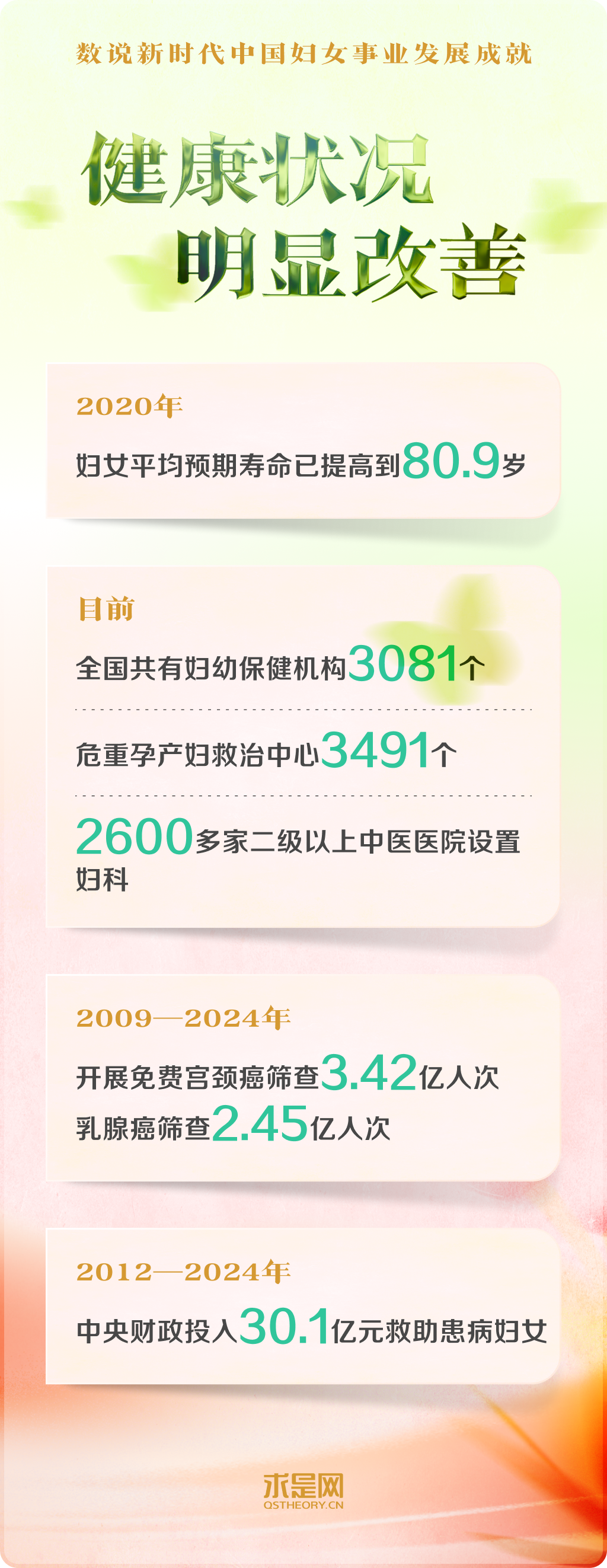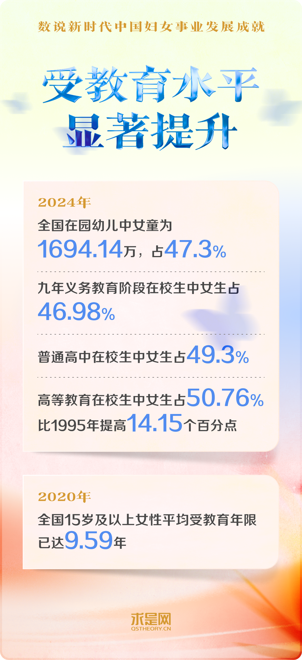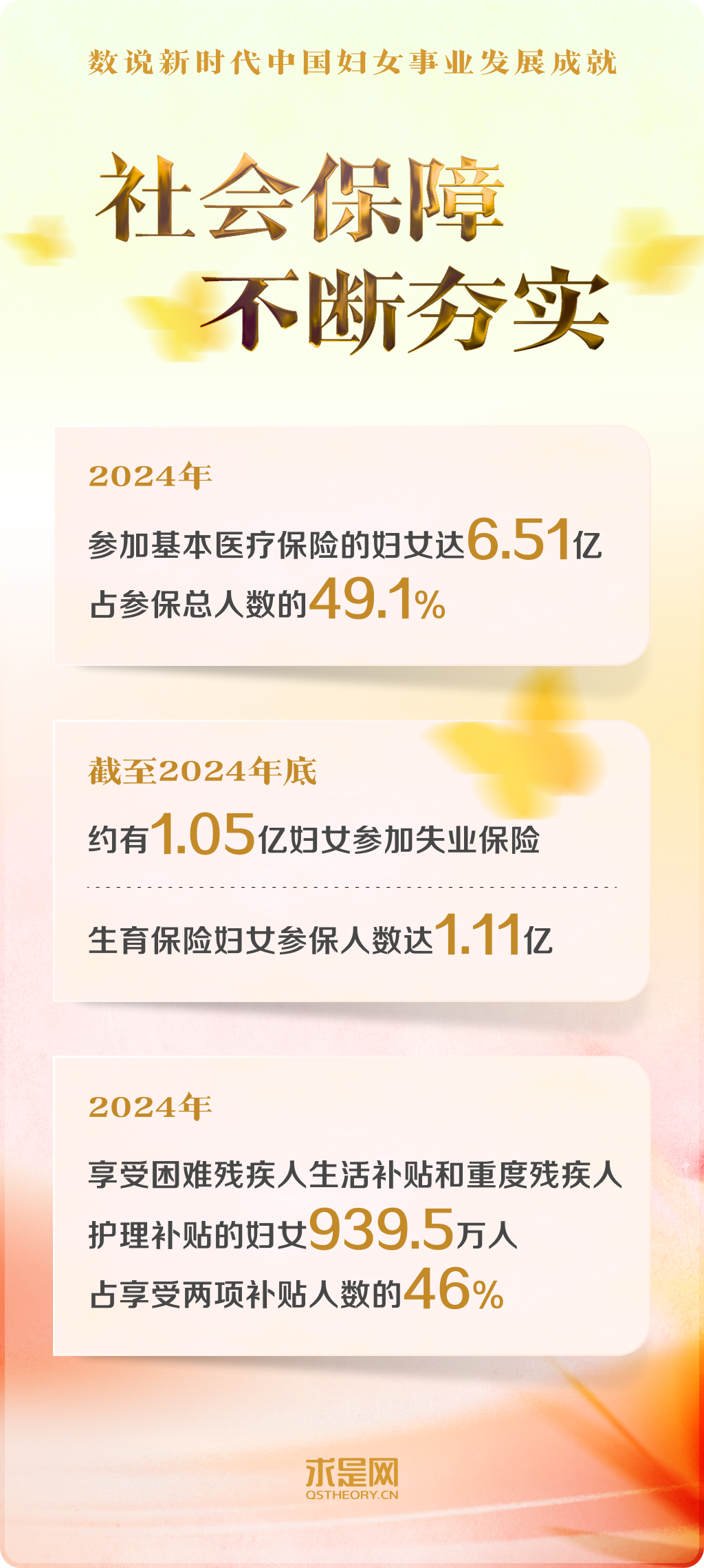 黨的十八大以來,以習(xí)近平同志為核心的黨中央把保障婦女合法權(quán)益、促進男女平等和婦女全面發(fā)展,作為中國式現(xiàn)代化的重要內(nèi)容,對婦女事業(yè)發(fā)展作出一系列開創(chuàng)性、全局性、長遠性的重大決策部署。中國在幼有所育、學(xué)有所教、勞有所得、病有所醫(yī)、老有所養(yǎng)、住有所居、弱有所扶上持續(xù)用力,不斷實現(xiàn)廣大婦女對美好生活的向往。一組組數(shù)字,記錄下新時代中國婦女事業(yè)跨越式發(fā)展的重大成就。