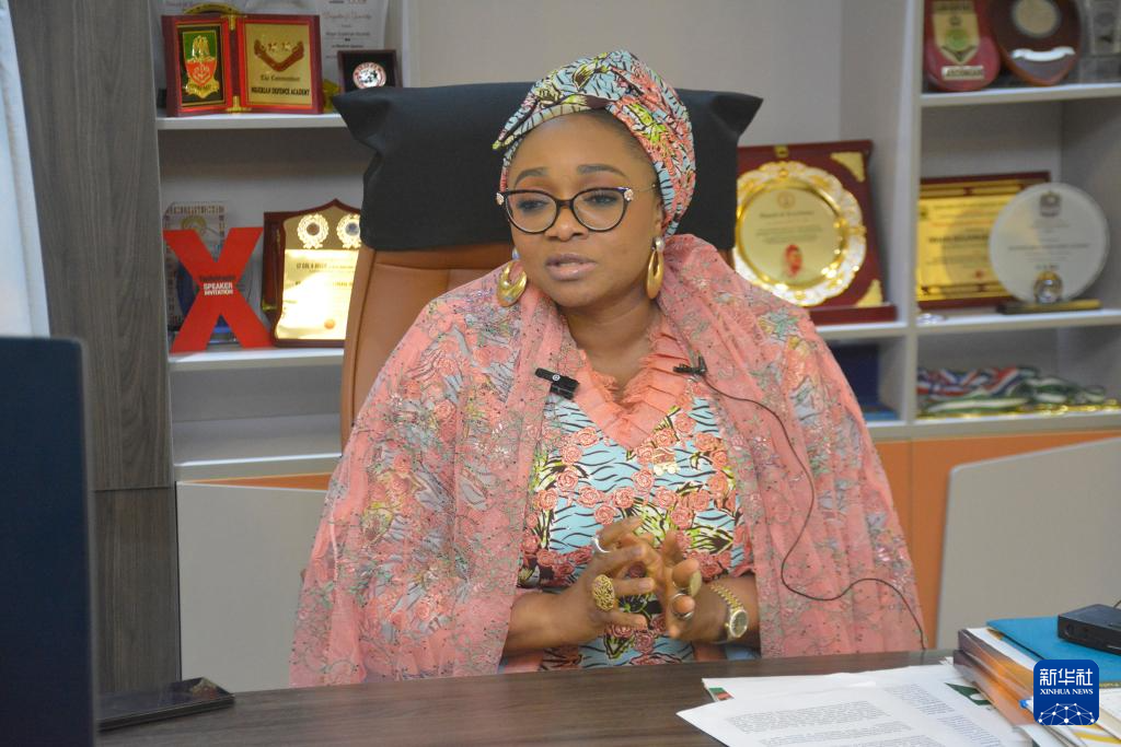 10月10日,尼日利亞婦女事務(wù)部長伊曼·蘇萊曼-易卜拉欣在赴華參加全球婦女峰會(huì)前在位于首都阿布賈的辦公室接受新華社記者專訪。新華社發(fā)(奧拉圖恩吉·薩利尤攝)