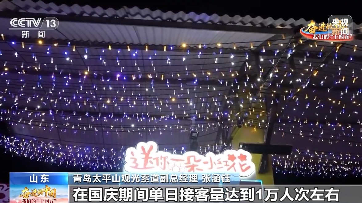 青島太平山觀光索道副總經理 張涵鈺:電影火了之后,來的游客明顯比之前多了起來,今年客流量又創(chuàng)了新高,在國慶期間單日客流量達到1萬人次左右。