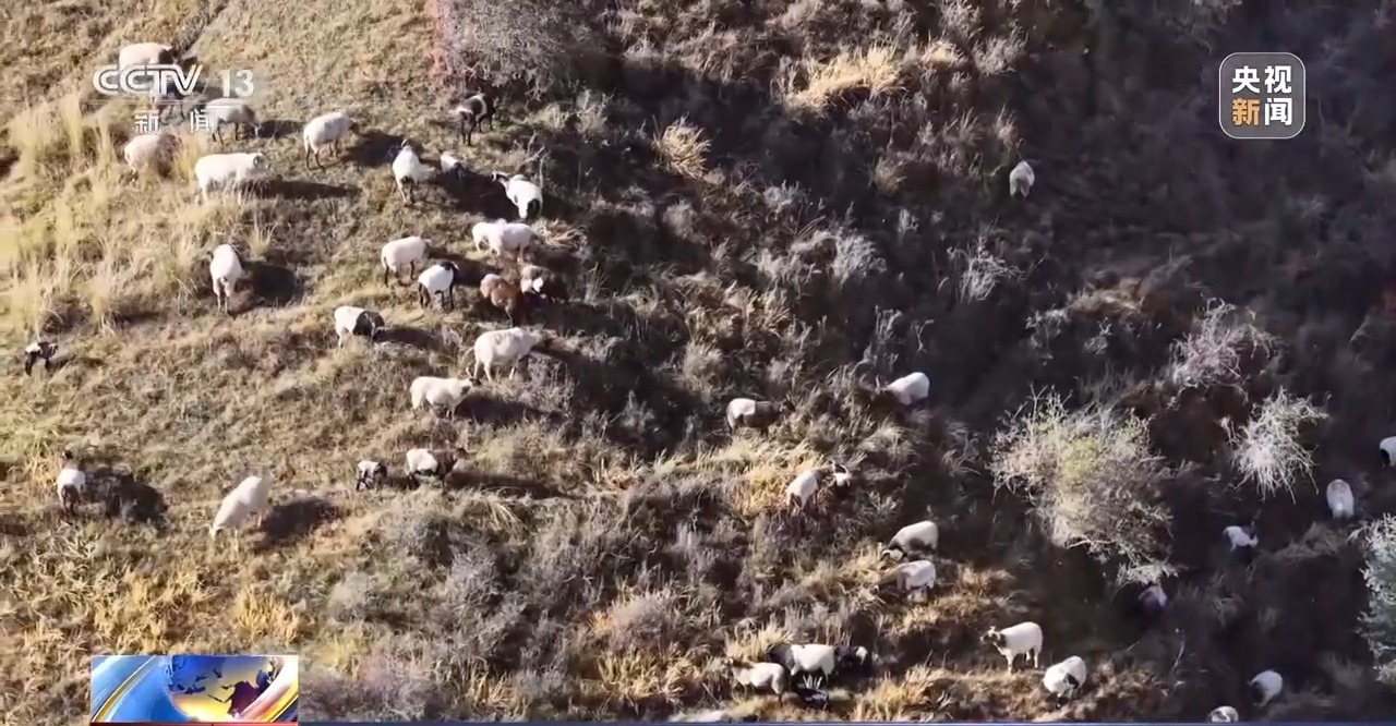 總臺記者 安文劍:目前羊群正在地里啃食洋蔥收獲后留在地里的一些葉子,在河西走廊的借牧,最主要的資源就是豐富的玉米秸稈,今年這里的玉米還沒有采收,玉米稈上還有碩大的玉米棒子。其實,往年這個時候玉米早就采收完了,羊群下來后可以吃玉米收獲時的一些“漏網之魚”,等散落的玉米吃完了才會吃秸稈。