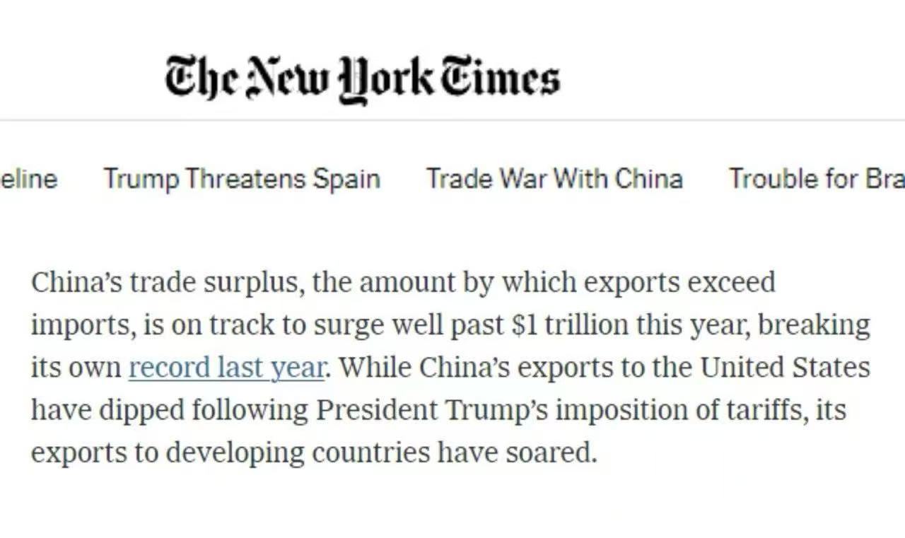 美國《紐約時(shí)報(bào)》的文章分析稱,強(qiáng)勁的出口和對(duì)新工廠的持續(xù)投資使中國經(jīng)濟(jì)在夏季保持穩(wěn)定增長。中國的出口投資以及用國產(chǎn)商品取代進(jìn)口的政策繼續(xù)推動(dòng)著經(jīng)濟(jì)增長。與去年同期相比,商品貿(mào)易順差在過去三個(gè)月中增加了12.4%。中國的貿(mào)易順差今年有望超過1萬億美元,主要得益于中國對(duì)發(fā)展中國家的出口激增。