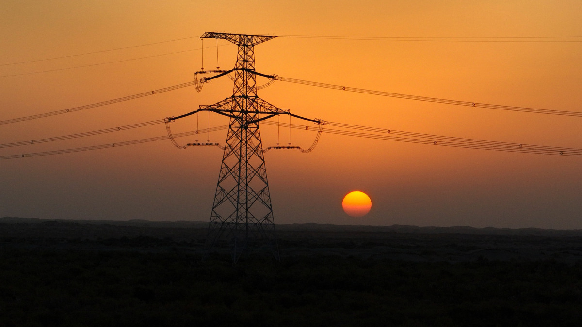 2025年10月18日,落日余暉中的民豐—且末—若羌750千伏輸電線(xiàn)路工程。(馬元 攝)