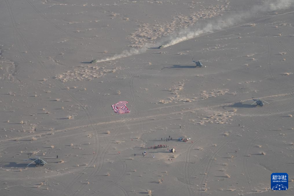 11月14日,載著神舟二十號航天員乘組的神舟二十一號載人飛船返回艙在東風著陸場成功著陸。新華社發(fā)(汪江波 攝)