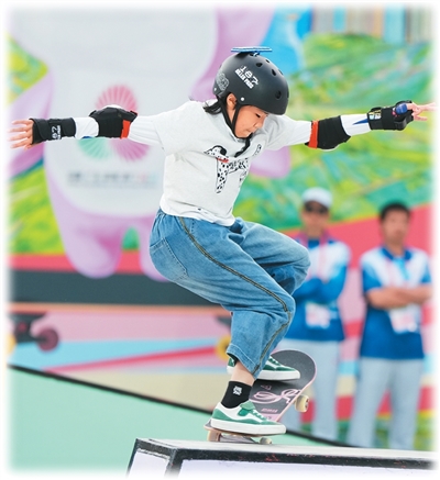 上海隊選手徐琳瀧在滑板比賽中。