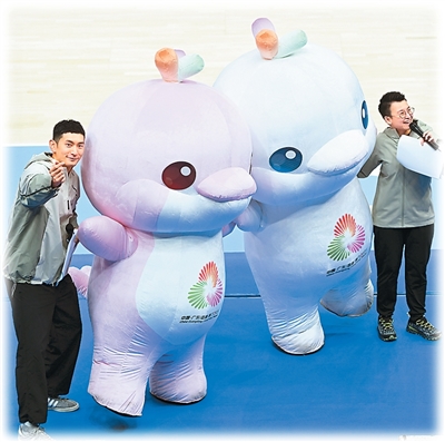 第十五屆全國運動會吉祥物與觀眾互動。