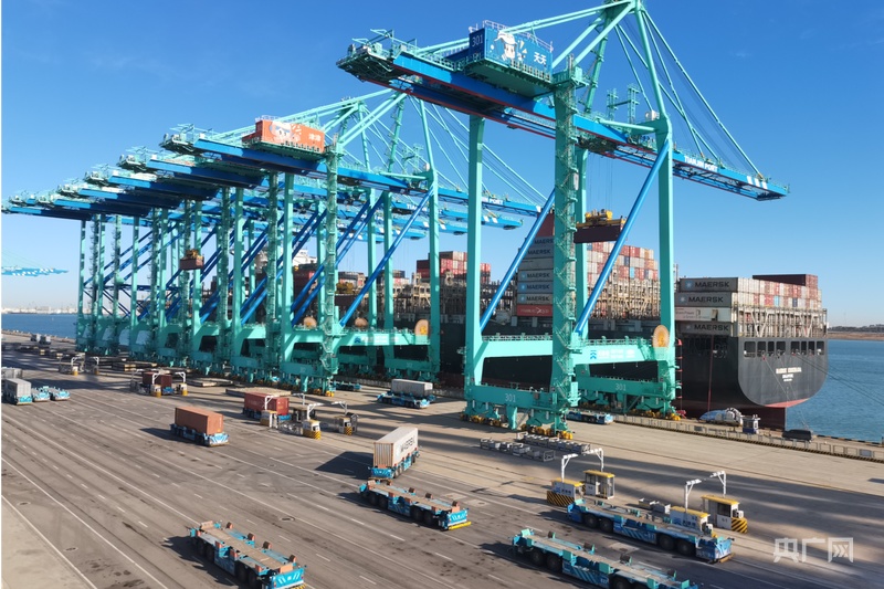 在冬日暖陽照耀下,渤海灣畔的集裝箱碼頭上,一臺臺人工智能運(yùn)輸機(jī)器人正在“智慧大腦”控制下自主穿梭,以毫米級精度完成裝卸;極目遠(yuǎn)眺,林立的風(fēng)機(jī)不斷轉(zhuǎn)動,帶來源源不斷的清潔動力……這是全球首個“智慧零碳”碼頭——天津港北疆港區(qū)C段智能化集裝箱碼頭的日常,更是新質(zhì)生產(chǎn)力賦能海洋經(jīng)濟(jì)的生動寫照。