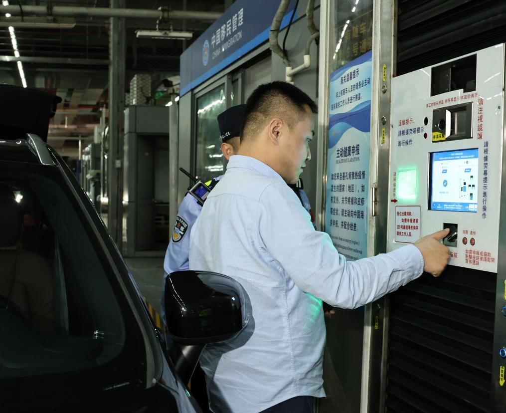 11月15日零時,“粵車南下”首位通關(guān)車主周先生在“一站式”通道辦理通關(guān)手續(xù)。新華社記者 黃國保 攝