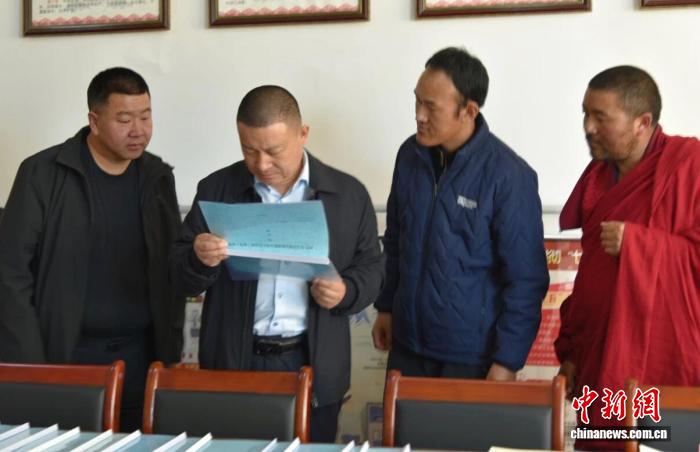 圖為甘南州委常委、統(tǒng)戰(zhàn)部部長(zhǎng)王力(左二)調(diào)研寺廟管理工作。甘南州委統(tǒng)戰(zhàn)部供圖