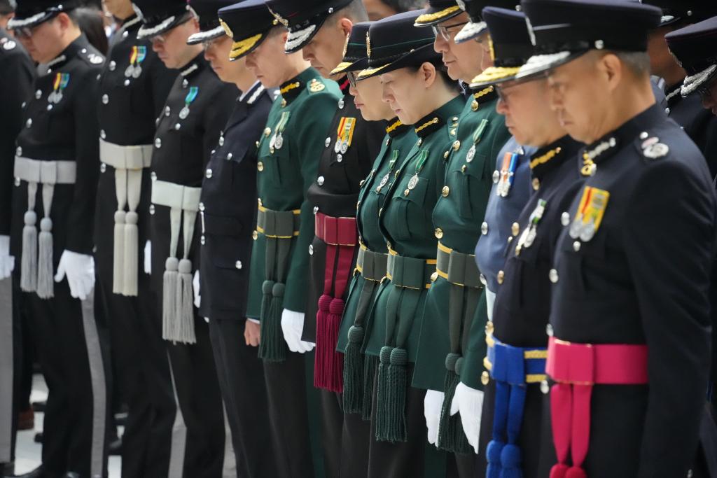 同日上午,中央政府駐香港聯(lián)絡辦、駐港國家安全公署、外交部駐港特派員公署、解放軍駐港部隊等也舉行下半旗和默哀儀式。