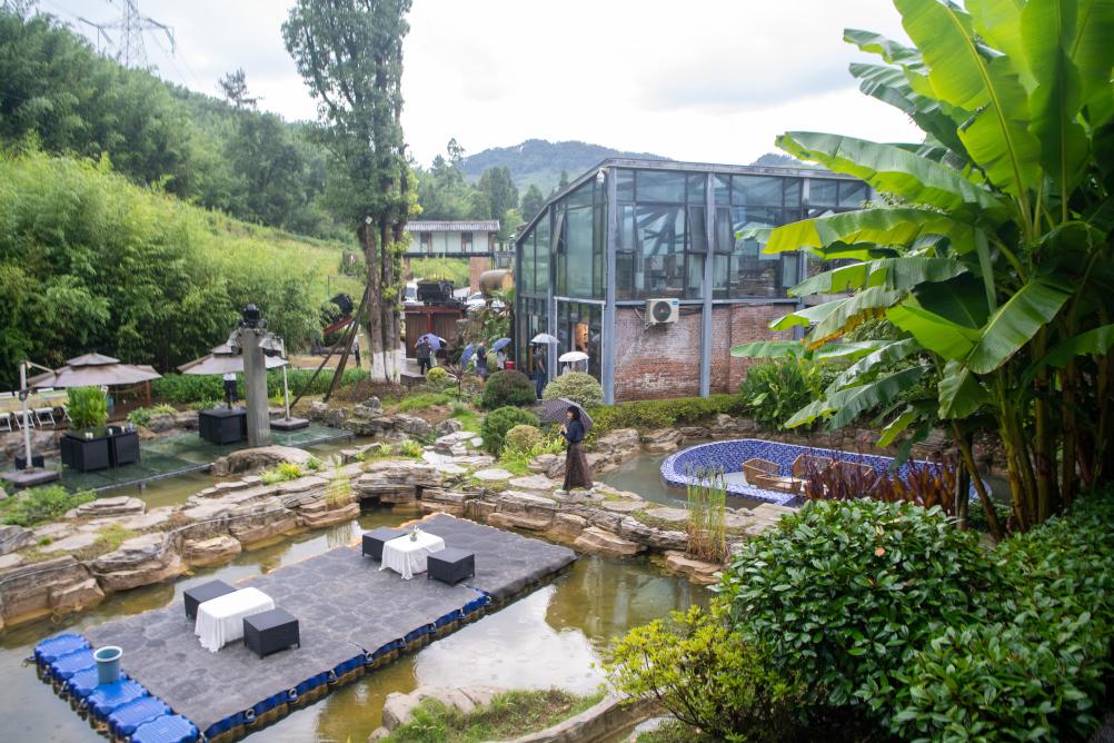 2025年8月15日拍攝的用礦山遺址改造的民宿。近年來(lái),重慶市梁平區(qū)竹山鎮(zhèn)獵神村立足自然資源優(yōu)勢(shì),積極推動(dòng)林業(yè)相關(guān)產(chǎn)業(yè)融合發(fā)展,將原有礦山塌陷區(qū)域進(jìn)行功能重構(gòu)和空間再塑,打造有山有水的小微濕地群落。新華社記者 唐奕 攝
