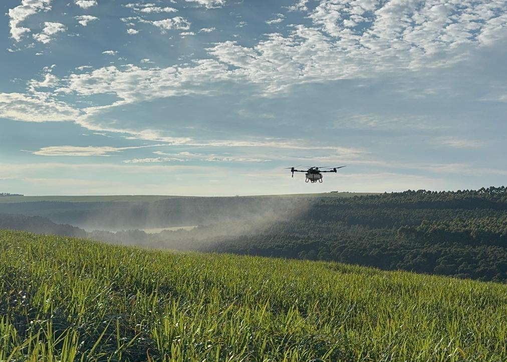 2025年3月25日,在南非夸祖魯-納塔爾省的方廷希爾莊園,中國(guó)農(nóng)用無人機(jī)為甘蔗林噴灑殺菌劑。新華社記者 白舸 攝