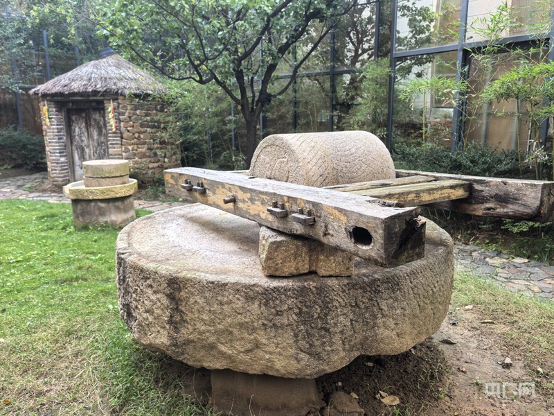 地雷戰(zhàn)紀(jì)念館館藏石雷和制作炸藥的石碾(央廣網(wǎng)記者 劉佳音 攝)
