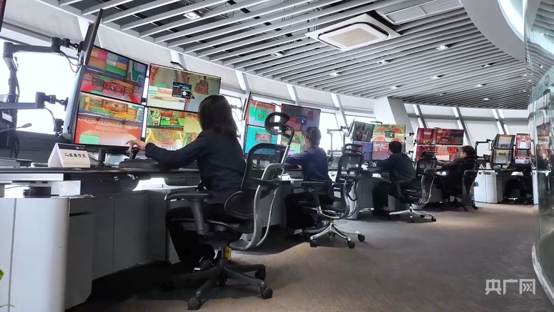操作員在遠(yuǎn)程操控室操控作業(yè)(央廣網(wǎng)記者 馮麗 攝)