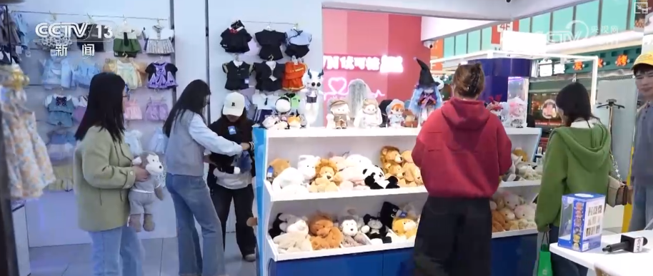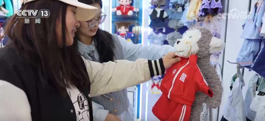 娃衣店店主張韻詩介紹,很多顧客的建議,加入了“娃衣”的售賣。很多消費者會現(xiàn)場給玩偶試穿,還會和他們交流設計想法,2025年以來,“娃衣”銷售量增長了30%左右。