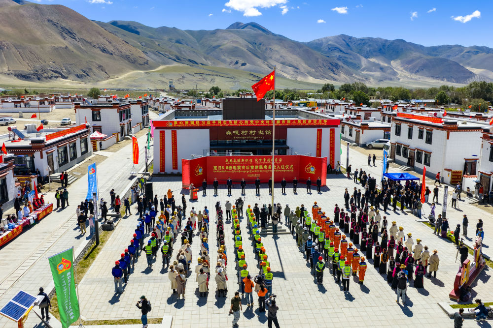 2025年8月15日,定日縣長所鄉(xiāng)森嘎村舉行“定日6.8級(jí)地震災(zāi)后恢復(fù)重建民房首批入住儀式”(無人機(jī)照片)。