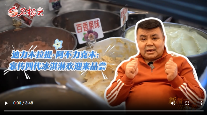 他爸爸還廣收徒弟,先后有266位疆內(nèi)外徒弟學(xué)成后自己開店、傳藝。能讓更多人品到美味,迪力木拉提是開心的。更讓他開心的是當(dāng)?shù)厝思案鞯赜慰蛯λ冶苛艿暮駩?。“我有時候這樣想,如果我的顧客回家的時候,能想起我家的冰淇淋,再能想起我來,我就特別開心?!钡狭δ纠嵴f。