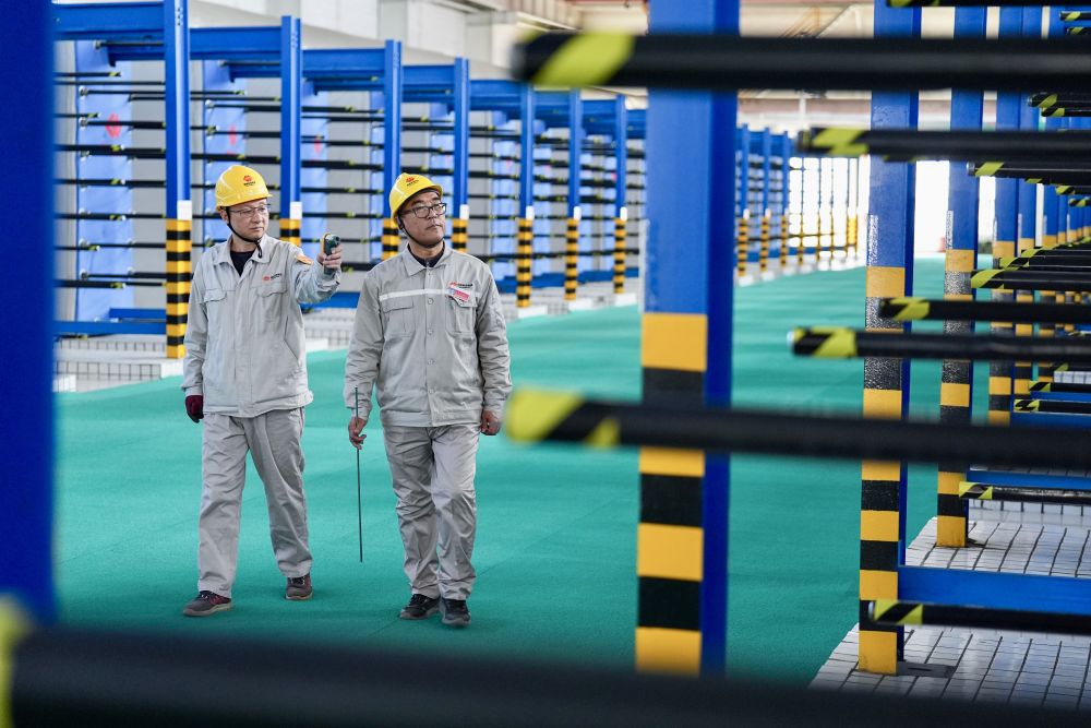 11月18日,在位于寧夏銀川的國(guó)能寧夏供熱有限公司中繼泵站內(nèi),工作人員對(duì)板式換熱器進(jìn)行巡檢。新華社記者 楊植森 攝