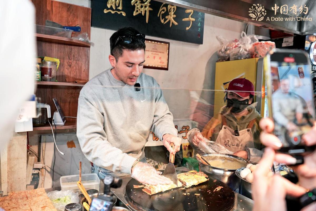 在古文化街,國際采訪團的外國朋友們學(xué)習(xí)了捏泥人,體驗了皮影戲表演,還親手制作并品嘗了正宗的天津煎餅,沉浸式感受了一把好吃又好玩的天津范兒。
