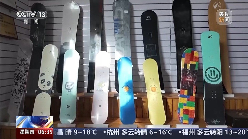 某冰雪裝備生產(chǎn)企業(yè)負(fù)責(zé)人 靳惠媛:2002年的時(shí)候,我正好是做外貿(mào)生意,趕上一個(gè)冬博會(huì),走到一個(gè)展位上,全是板子。那時(shí)候沒有見過這樣的滑雪板。他說剛剛進(jìn)入中國,在國外特別流行了,就進(jìn)貨了10塊單板。