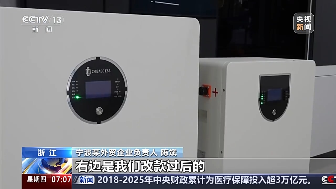 寧波某外貿(mào)企業(yè)負(fù)責(zé)人 陳斌:左邊的這個(gè)產(chǎn)品是我們?cè)瓉?lái)的舊產(chǎn)品,右邊是我們改款過(guò)后的,相比原來(lái)的產(chǎn)品,新產(chǎn)品重量減少了15%左右,體積減小了25%左右,它的能量密度就更高了,在市場(chǎng)上就具有更好的競(jìng)爭(zhēng)力。
