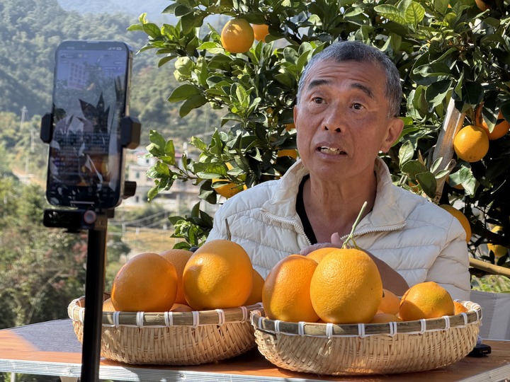 臺灣嘉義的王文瑞在祖籍地——江西贛州直播推介贛南臍橙,他的“臺灣阿公”新媒體賬號吸引全網(wǎng)超100萬粉絲關注。新華社記者 陳柱佐 攝