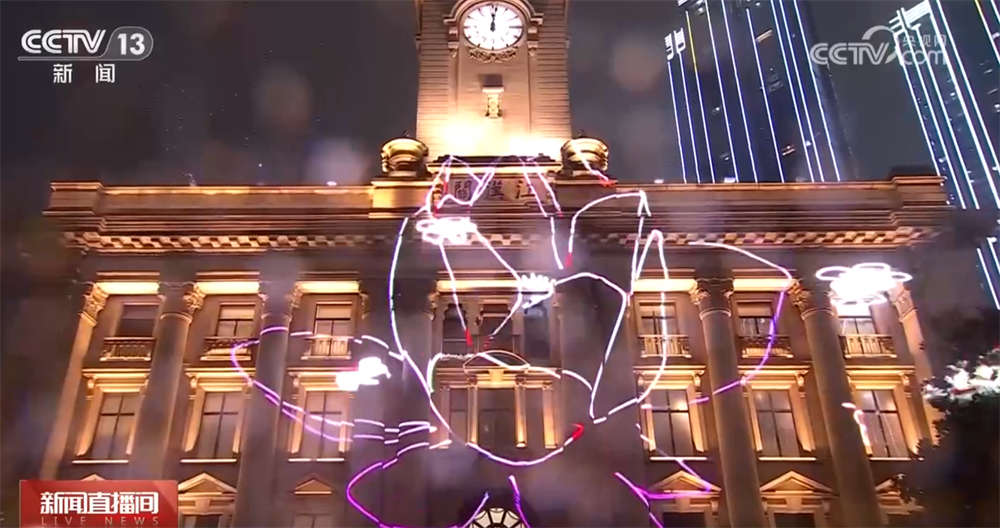百年鐘樓首次以交響樂開啟跨年夜,在交響樂中,江漢關大樓上亮起光影秀,多個武漢地域特色符號輪番展現(xiàn)夜空;櫻花、荷花、桂花、梅花依次綻放,以璀璨燈火點亮萬家心愿。