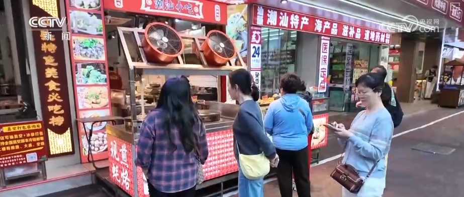 第一站來(lái)到汕頭著名的美食集聚地龍眼南路美食街,這里全長(zhǎng)470米,涵蓋潮汕特色美食、茶飲甜品、創(chuàng)意餐飲等。游客不僅可以吃上腸粉、粿條湯等傳統(tǒng)早餐,還能品嘗鹵鵝、生腌等招牌菜肴,以及反沙芋頭、腐乳雞翅等特色小吃。這條24小時(shí)不打烊的美食街吸引了來(lái)自全國(guó)各地的游客。