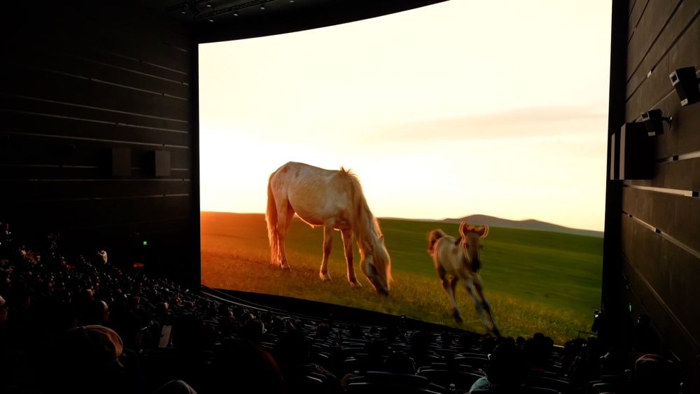 近日,全球首部生肖動物巨幕電影《馬到功成》在上??萍拣^內巨幕影院舉行首映。該屏幕融合4K、3D、高幀率等多項技術,同時也應用了中影集團新一代的CLED透聲屏方案。
