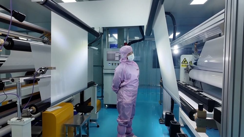 在園區(qū)內(nèi)的湖南壹鑫科技有限公司無(wú)塵生產(chǎn)車(chē)間,光學(xué)薄膜自動(dòng)化生產(chǎn)線正滿(mǎn)負(fù)荷運(yùn)轉(zhuǎn)。