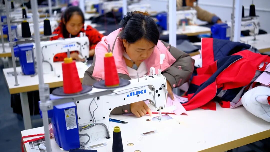 十八洞片區(qū)服裝廠內(nèi),村民正在縫制衣服(攝于2025年11月)。經(jīng)濟(jì)日?qǐng)?bào)記者朱雙健